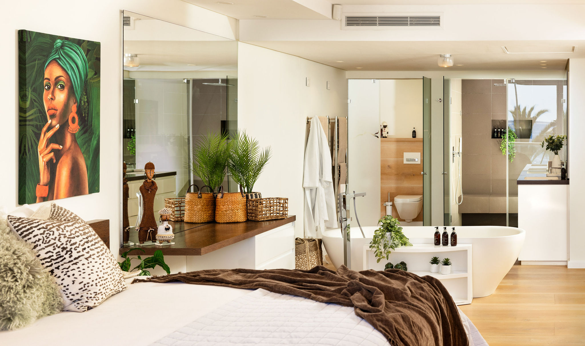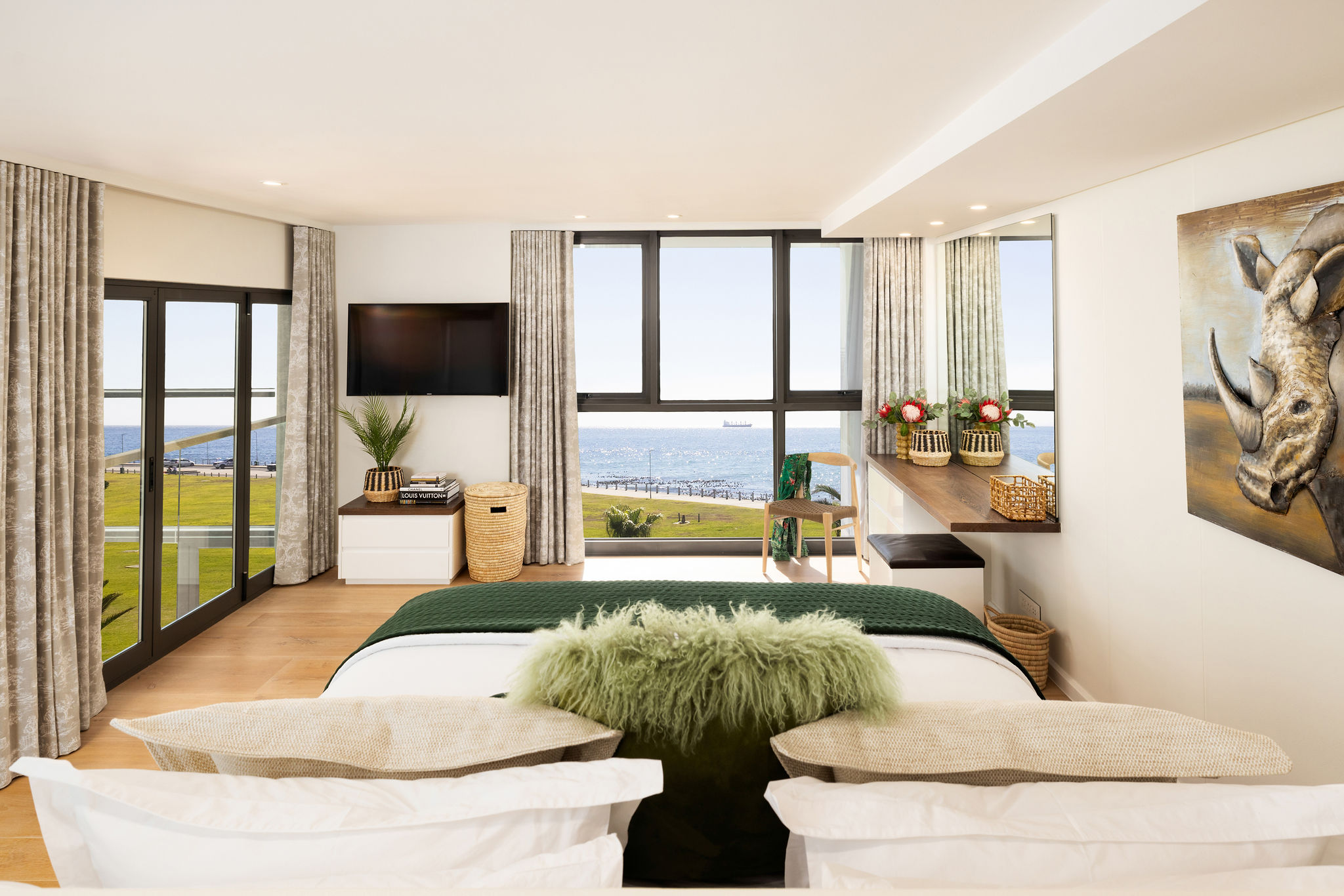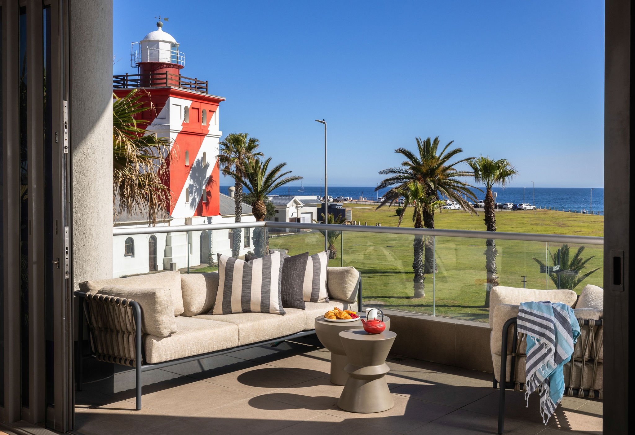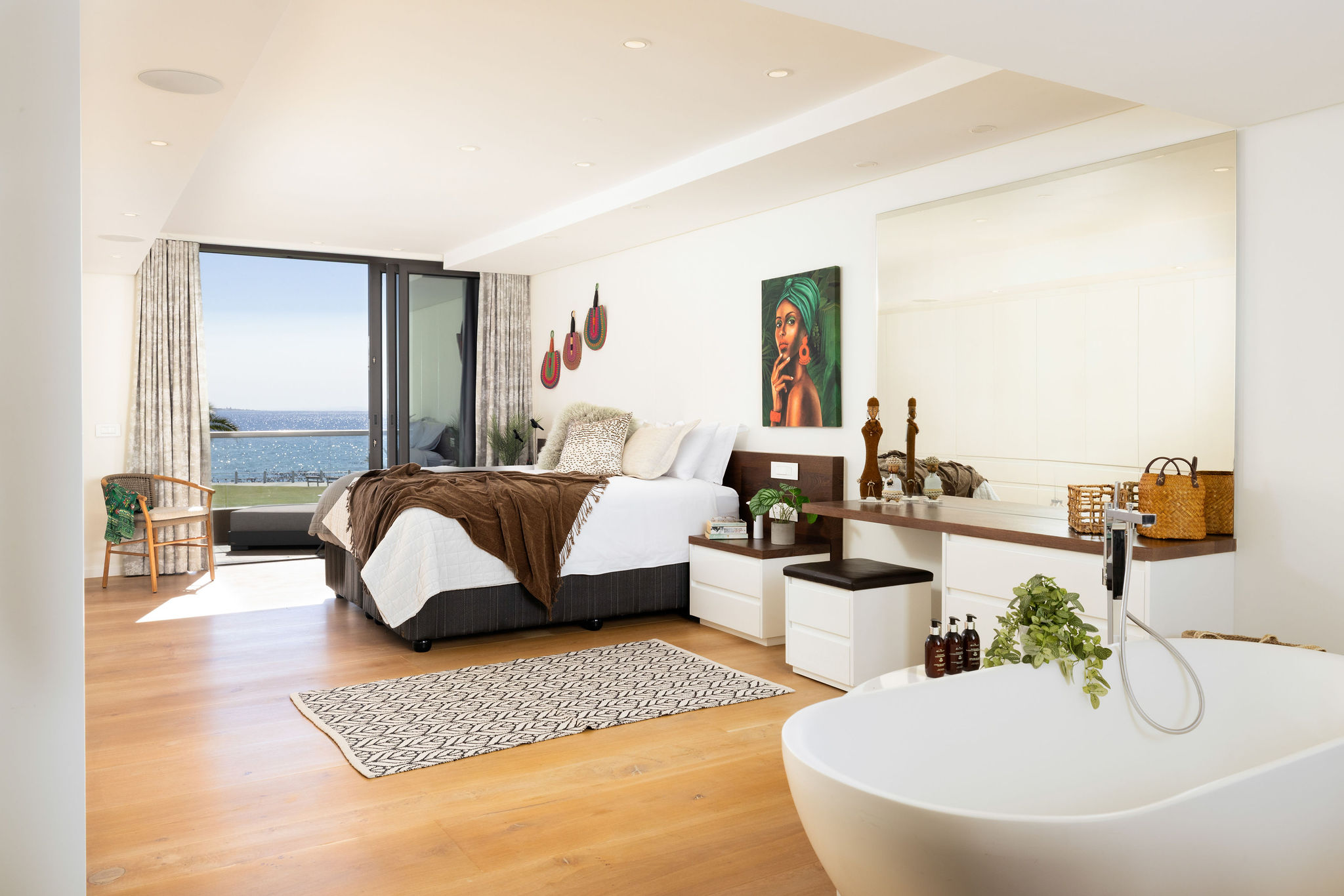 Step onto the balcony, furnished with chic seating and sun loungers — the ultimate setting for a morning coffee, long lazy afternoons, or evening cocktails against the backdrop of a golden sunset.