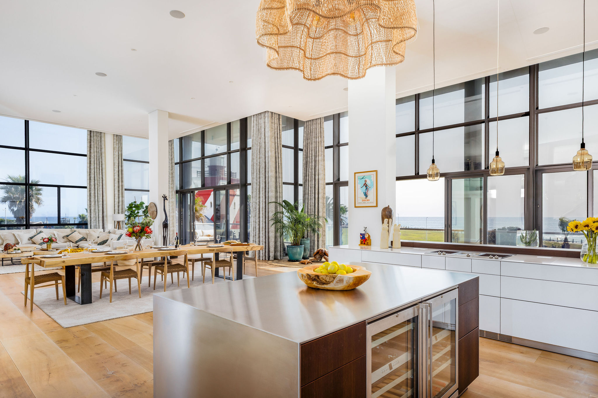 An expansive open-plan design seamlessly unites plush lounges, dual dining areas, and a state-of-the-art kitchen, all flowing effortlessly to the outdoors