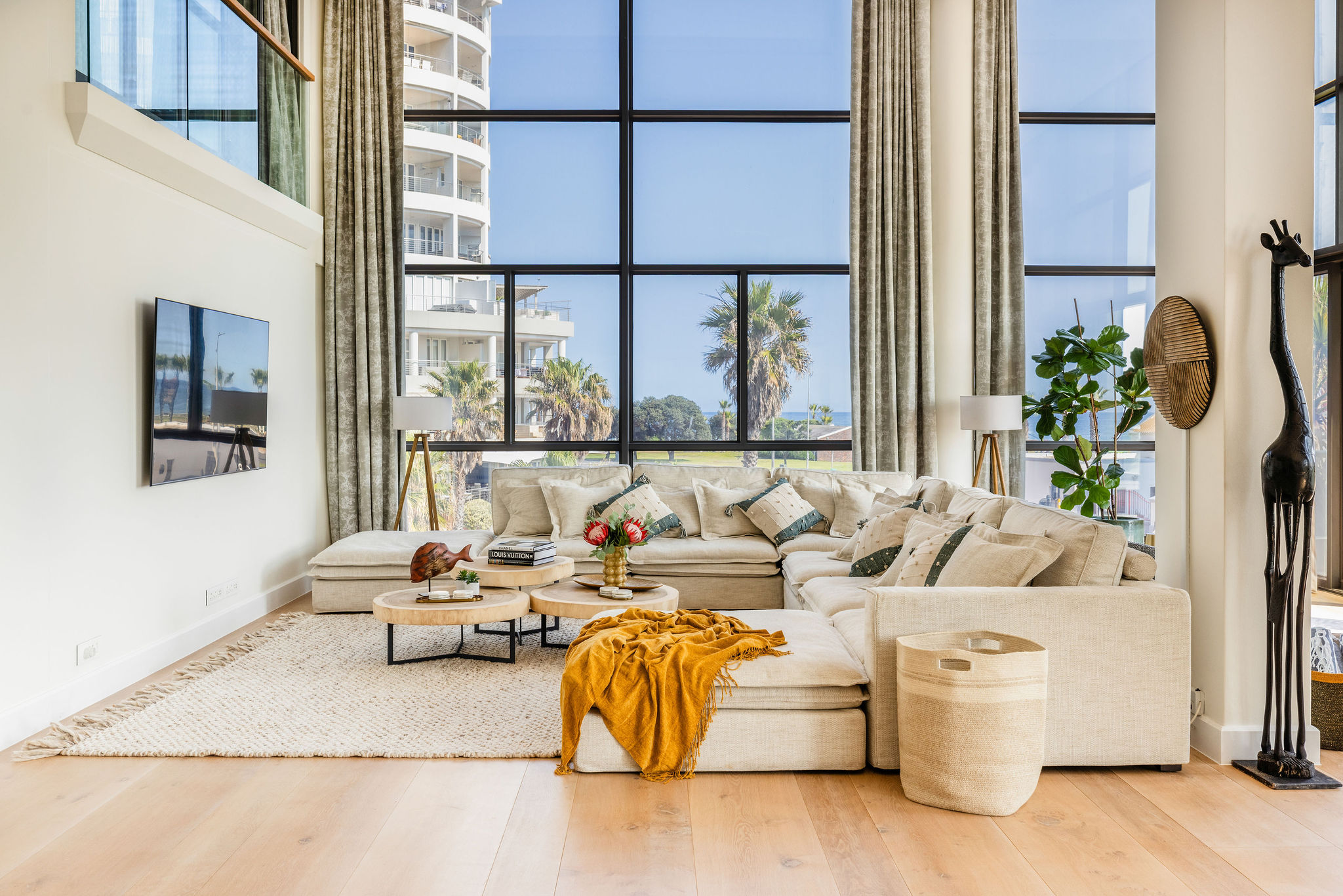 This exquisite double-volume condo exudes sophistication, with expansive interiors, soaring light-filled spaces, and a refined contemporary aesthetic. Dramatic floor-to-ceiling windows bathe the interiors in natural light while showcasing uninterrupted Atlantic vistas that extend endlessly to the horizon.
