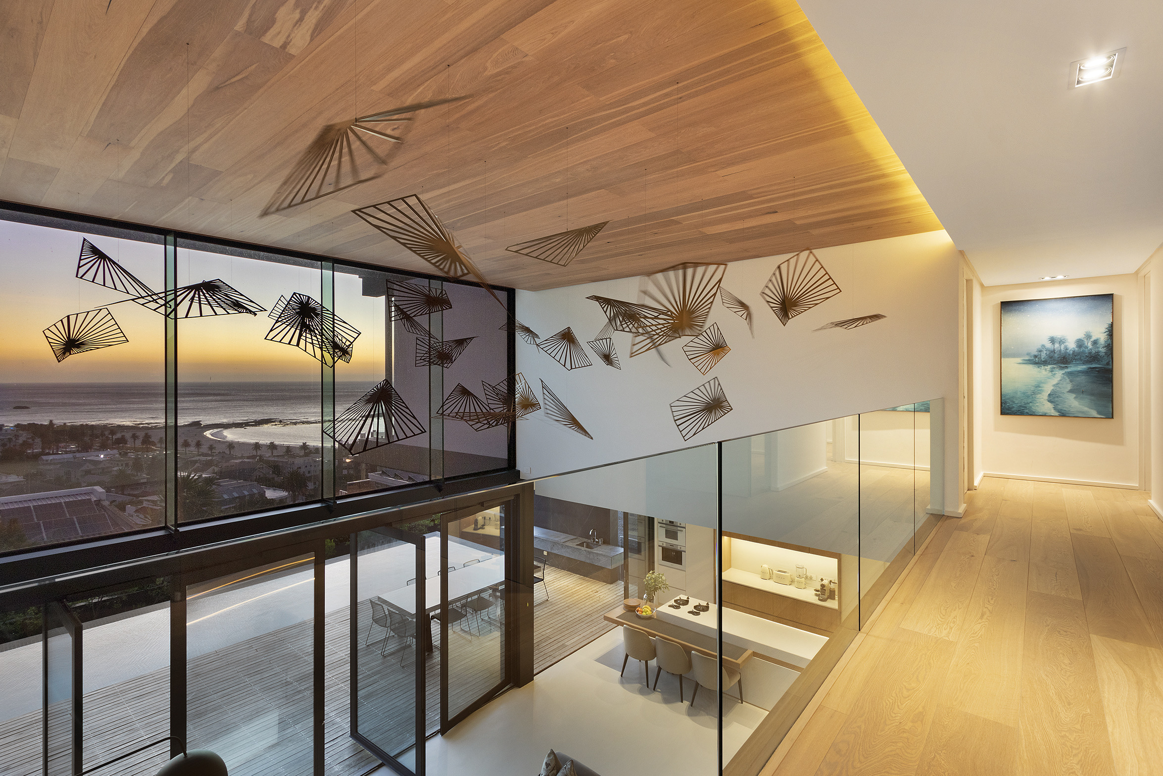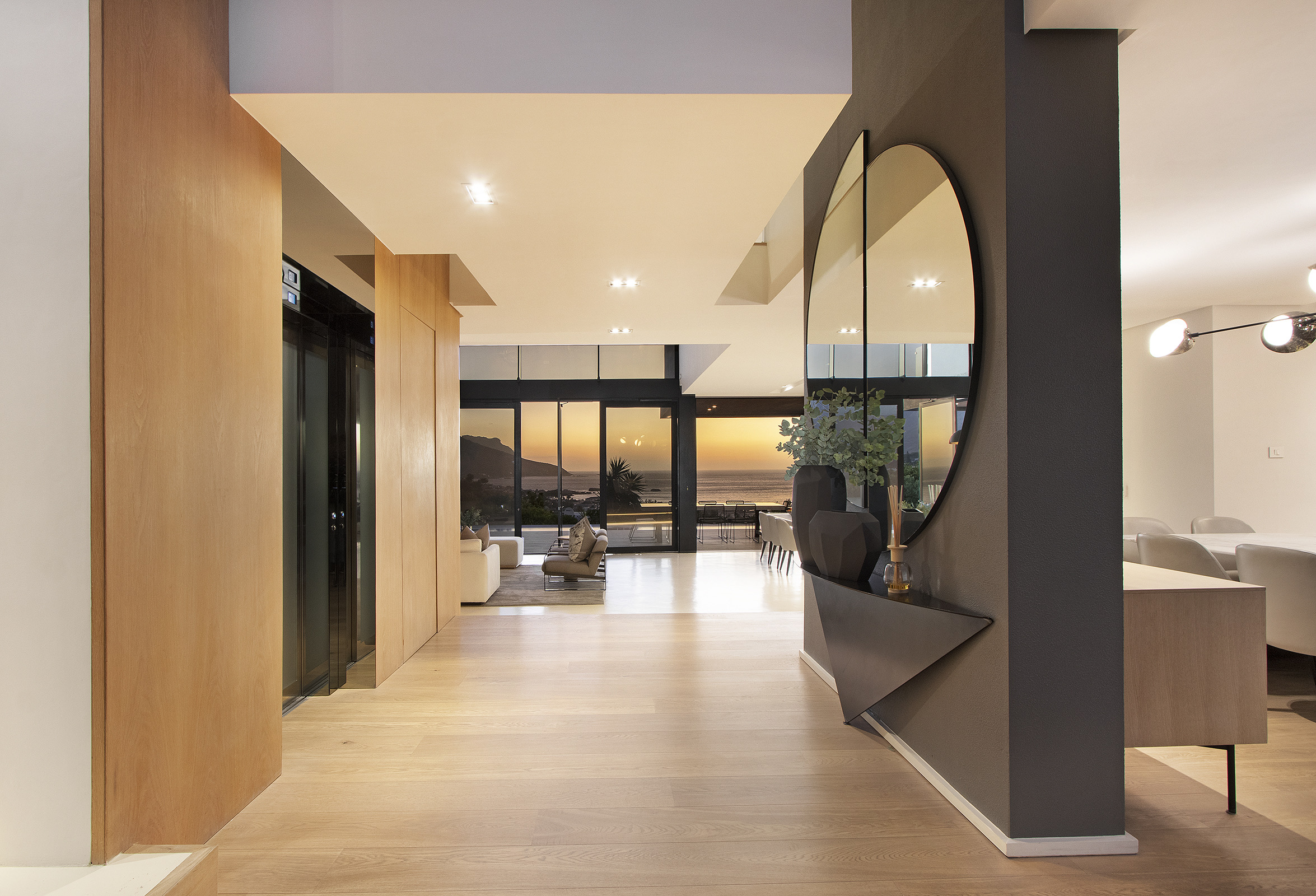 which opens op to a roof terrace with magical views of the ocean and mountains, an elevator and large swimming pool.