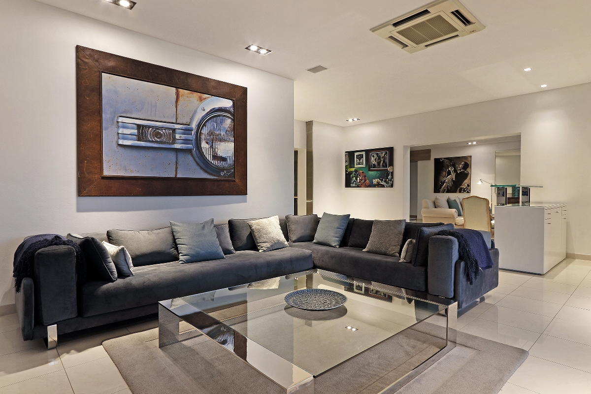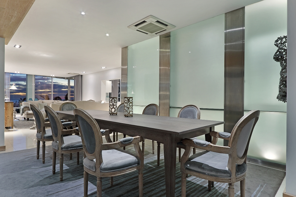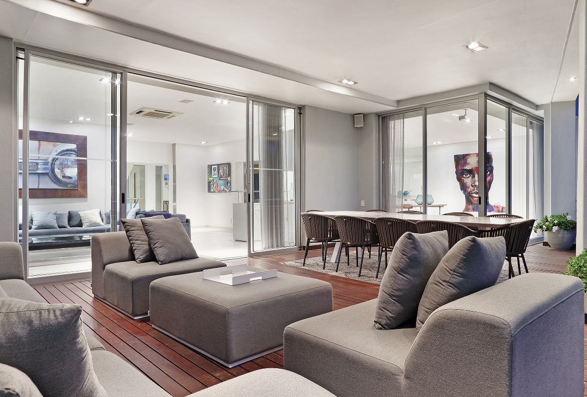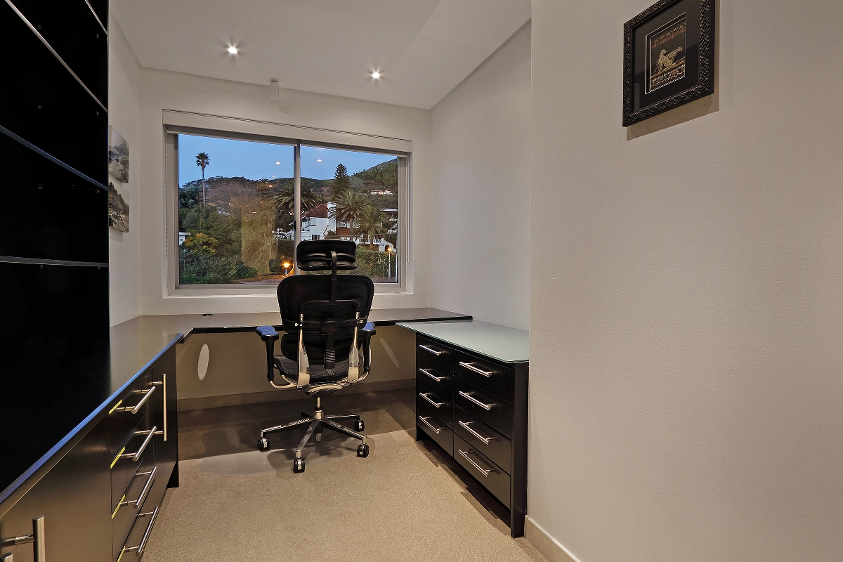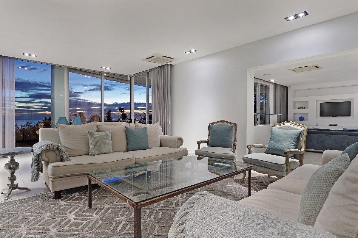 One enters the villa where you find the kitchen, dining and living areas. The lounge area flows onto a wooden terrace that overlooks the Atlantic Ocean and the famous Twelve Apostles mountain range.