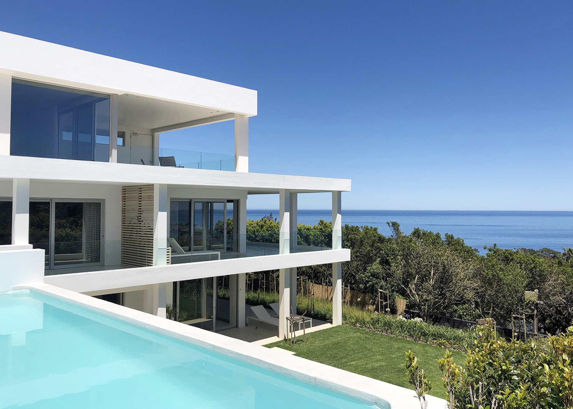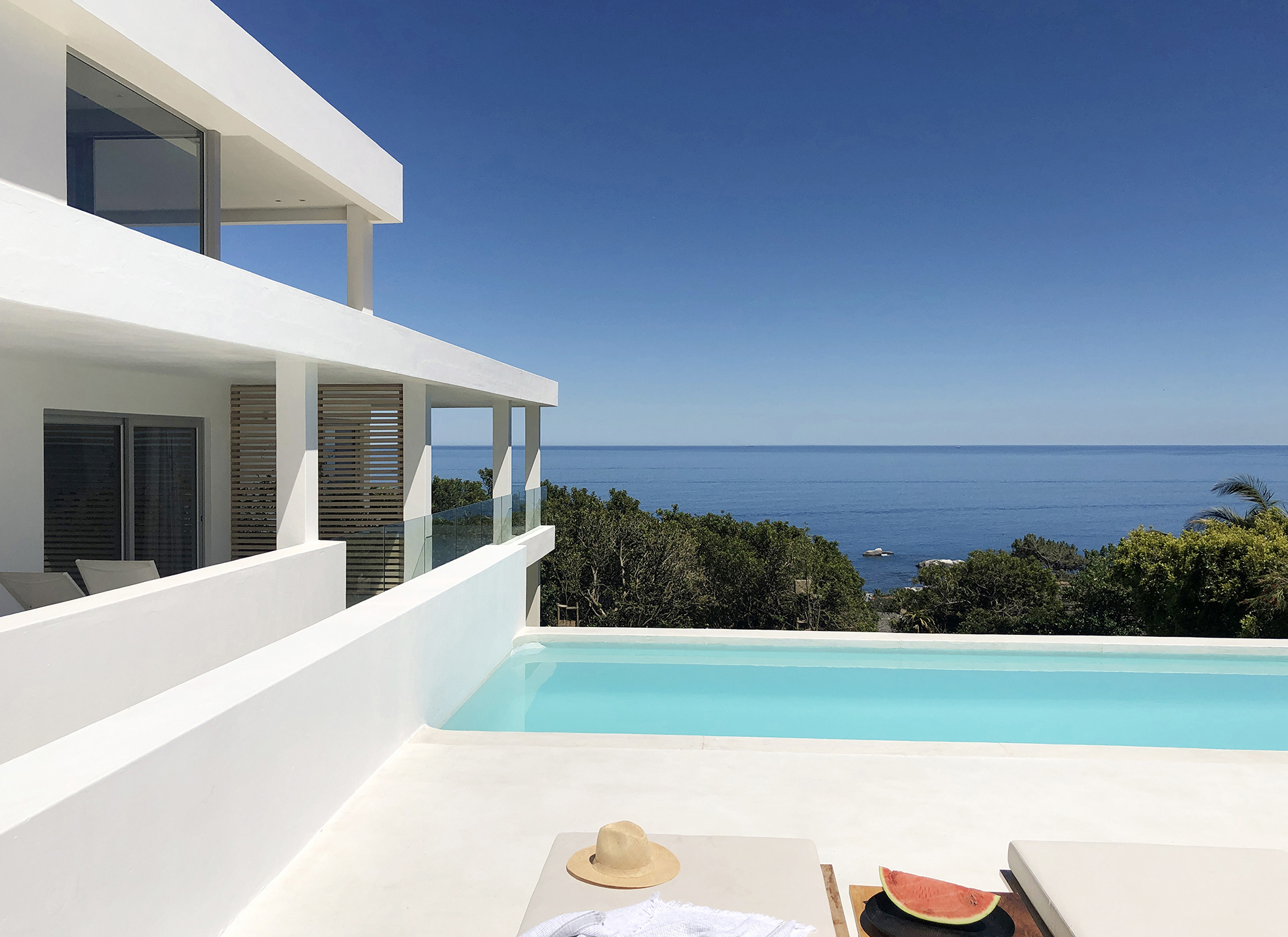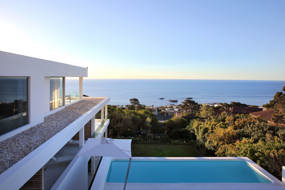 Brand new ‘Ibiza style’ villa located in Camps Bay with open views. The unique property has front facing sea views with easy access onto Rontree Road off Camps bay drive