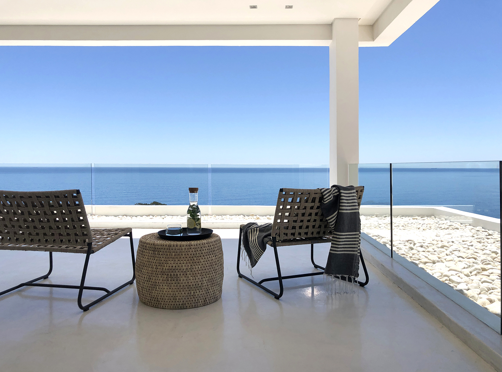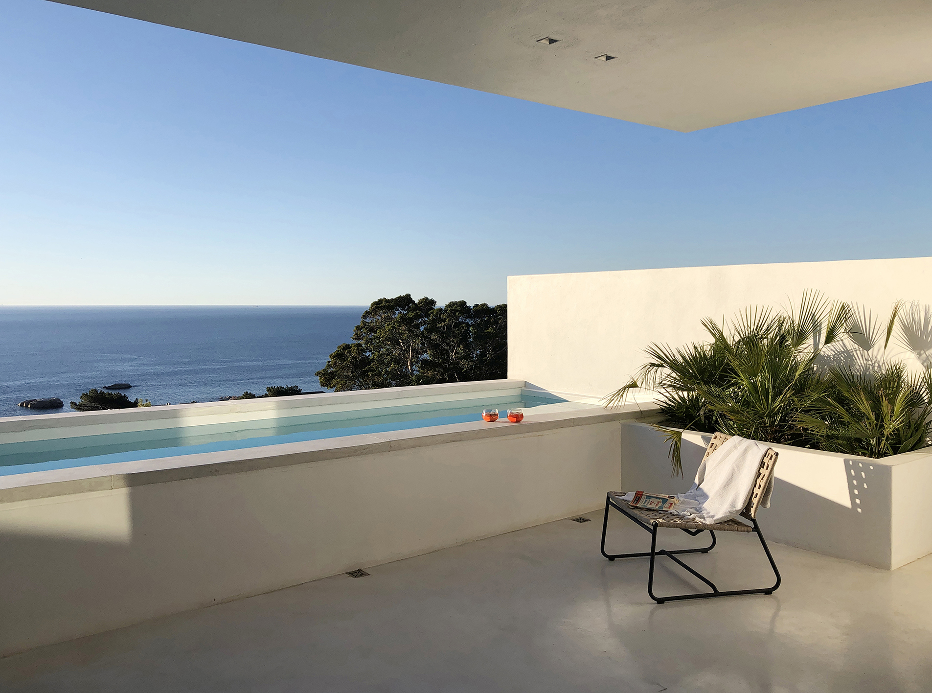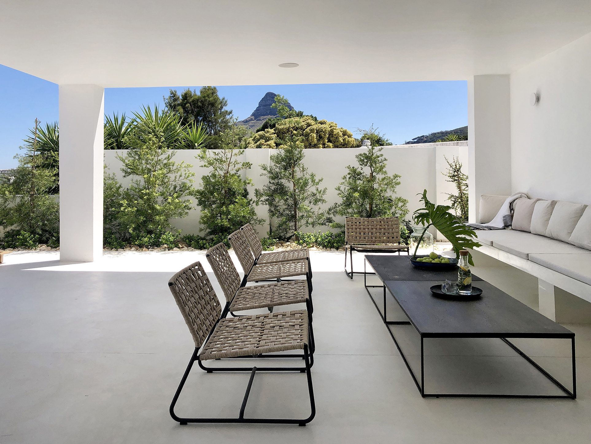 Brand new ‘Ibiza style’ villa located in Camps Bay with open views. The unique property has front facing sea views with easy access onto Rontree Road off Camps bay drive