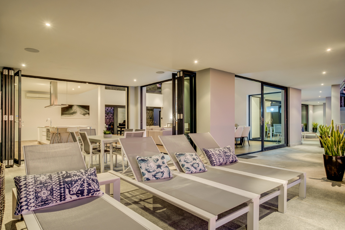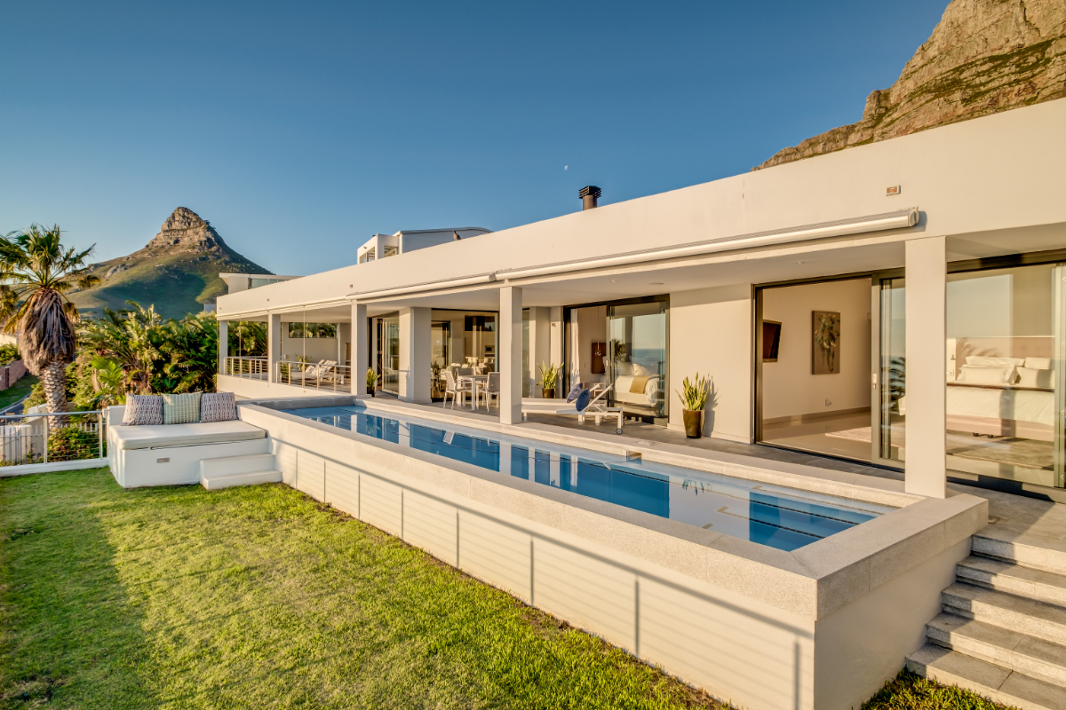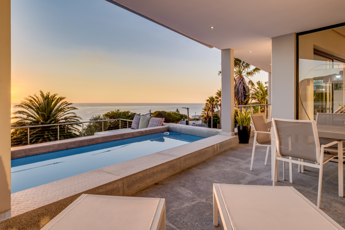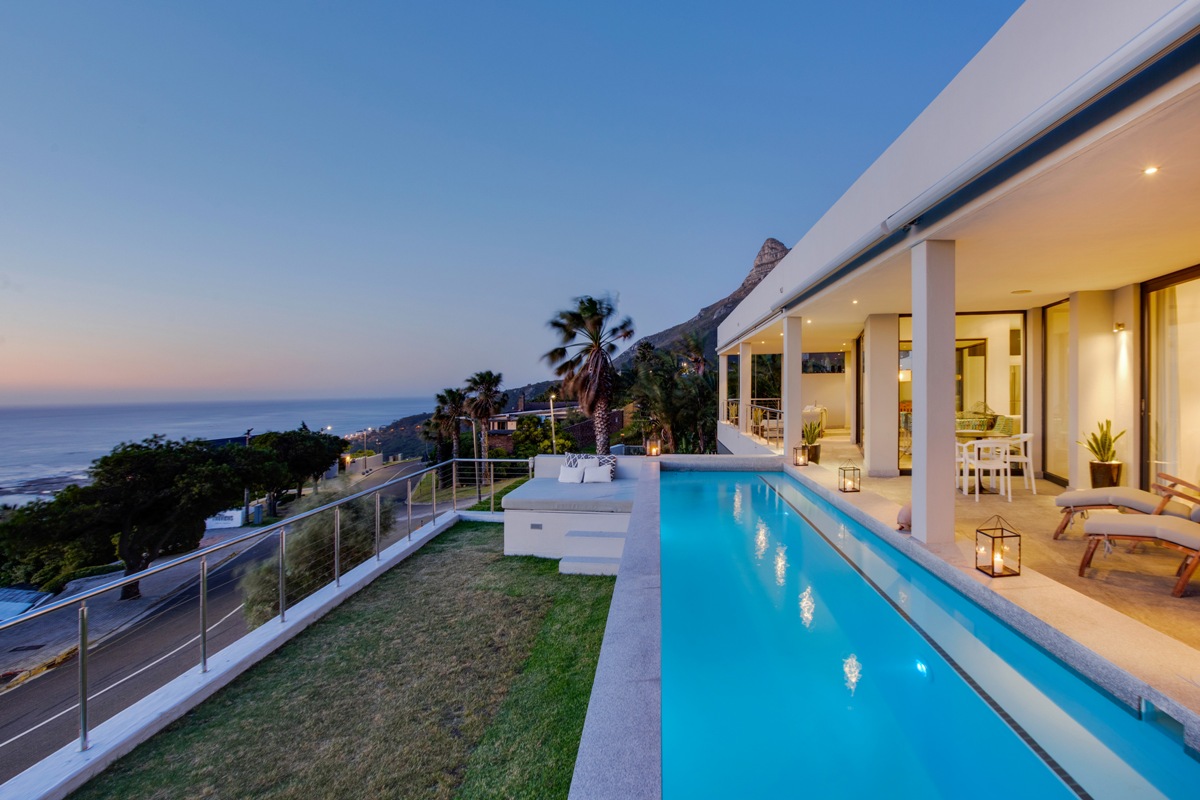 Overlooking the Atlantic Ocean in the glamorous seaside suburb of Camps Bay, this gorgeous villa is the perfect retreat for discerning guests looking for luxurious levels of privacy and comfort. The villa is split over two levels, with one bedroom on the lowest level and four bedrooms on the main level.