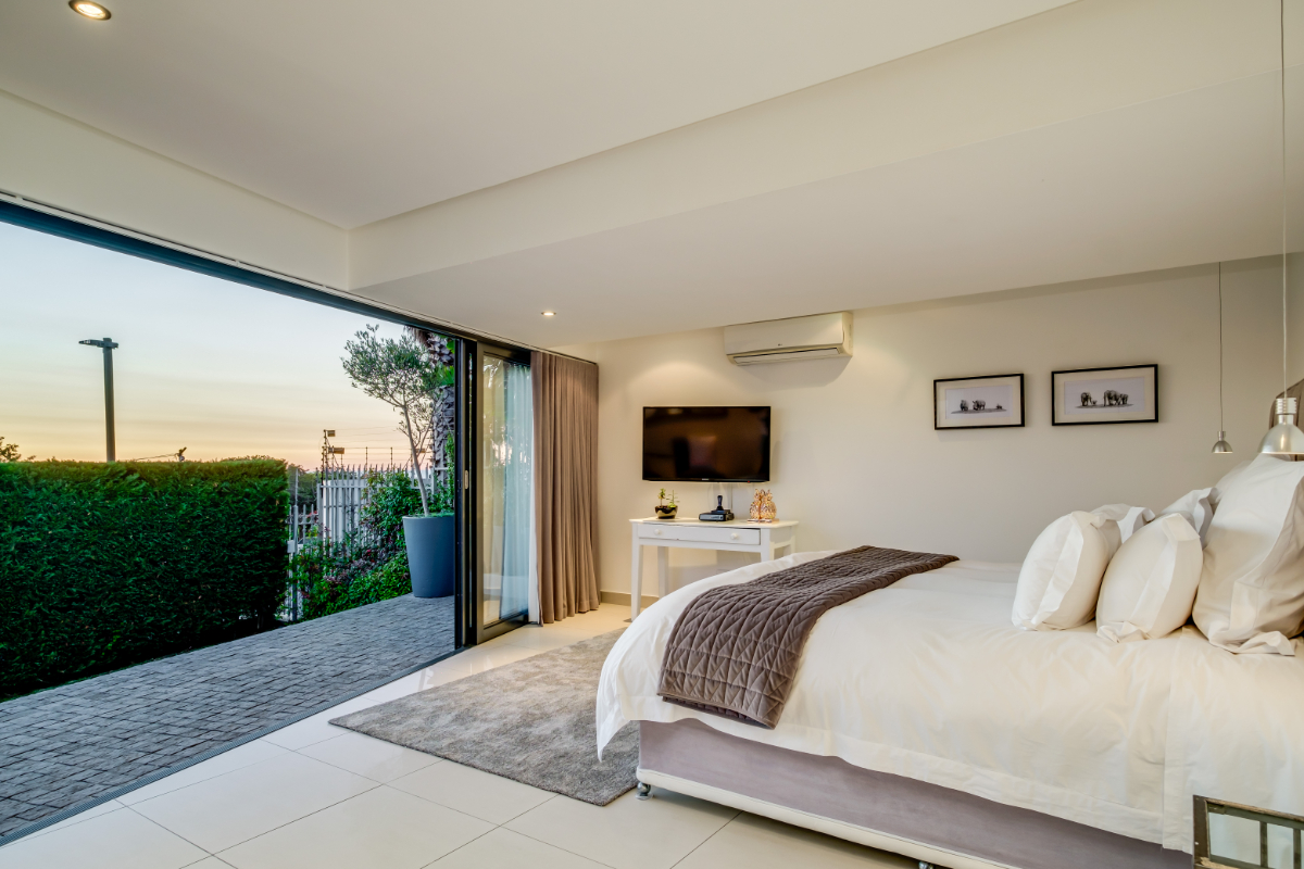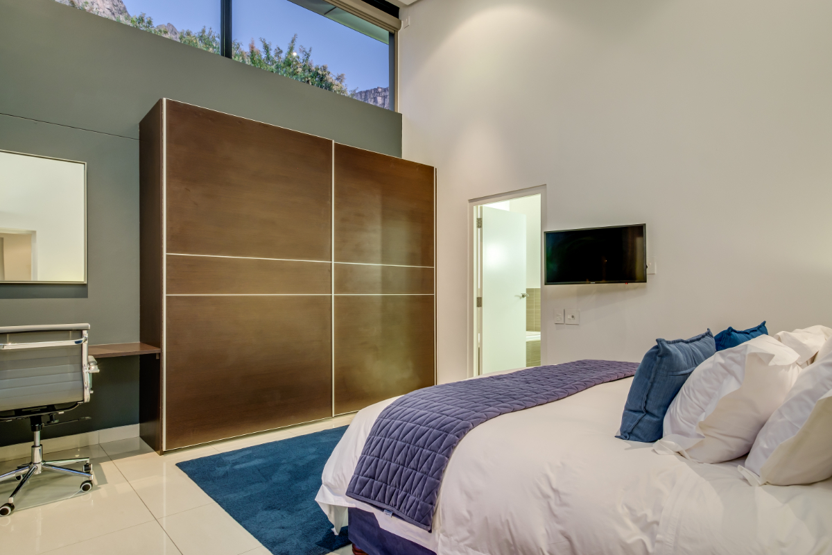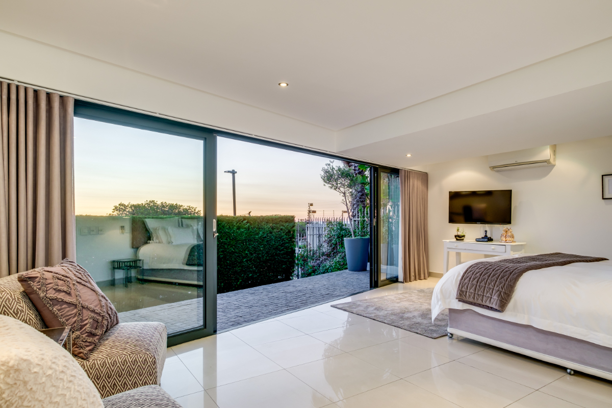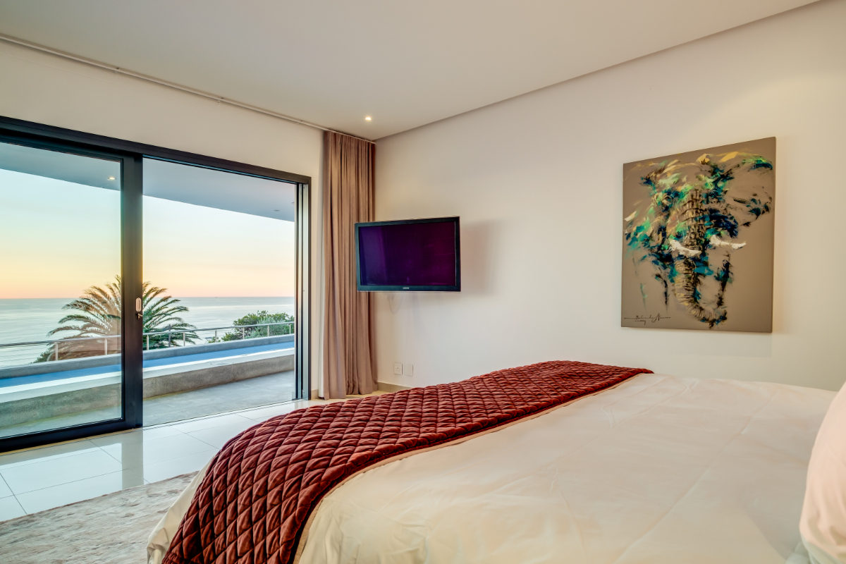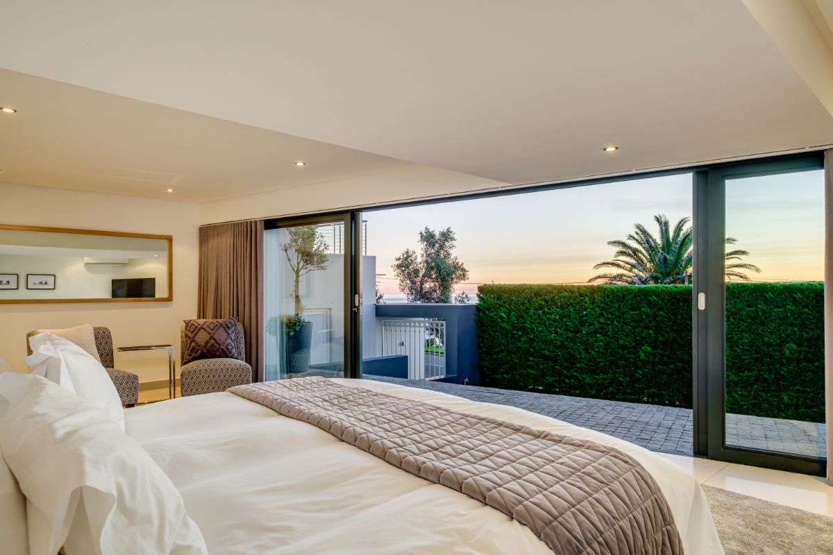 The master bedroom commands breath-taking ocean views with a luxury vi-spring super king size bed, spacious en-suite bathroom with double shower, bath and twin vanities and a private balcony is the perfect place to unwind and soak up the views. The remaining three guest bedrooms have super king-sized beds, en suite bathrooms, air-conditioning, and ample storage space. Each room has beautiful views of Lion’s Head, Table Mountain, or the vast Atlantic Ocean.