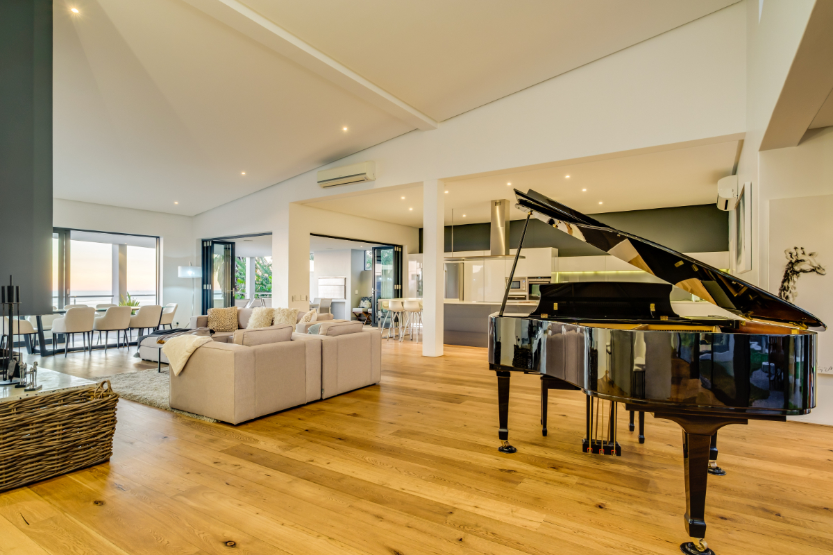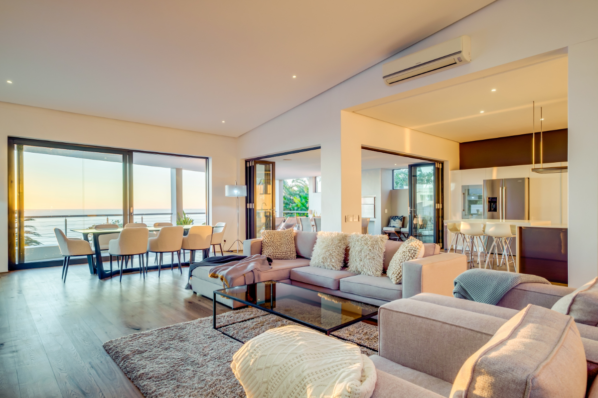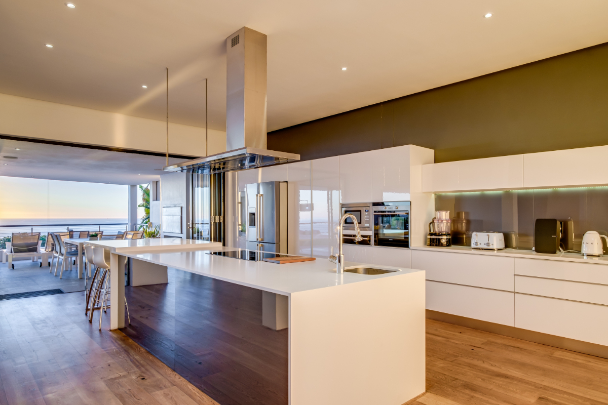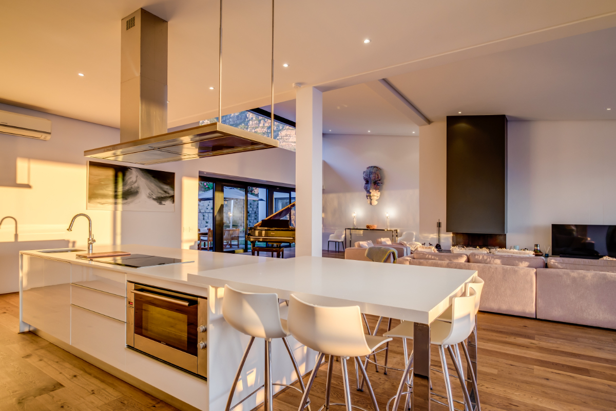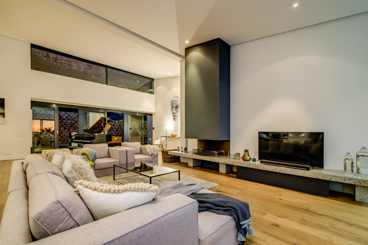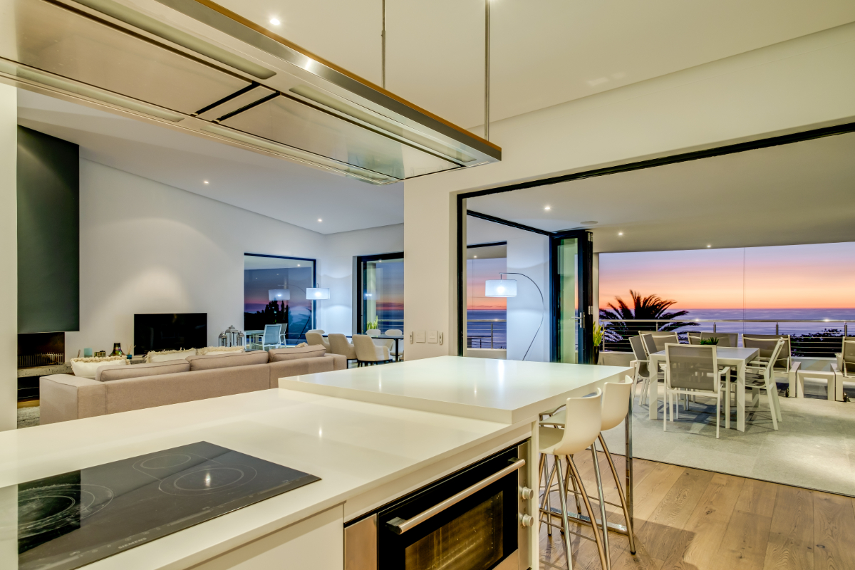 The master bedroom commands breath-taking ocean views with a luxury vi-spring super king size bed, spacious en-suite bathroom with double shower, bath and twin vanities and a private balcony is the perfect place to unwind and soak up the views. The remaining three guest bedrooms have super king-sized beds, en suite bathrooms, air-conditioning, and ample storage space. Each room has beautiful views of Lion’s Head, Table Mountain, or the vast Atlantic Ocean.