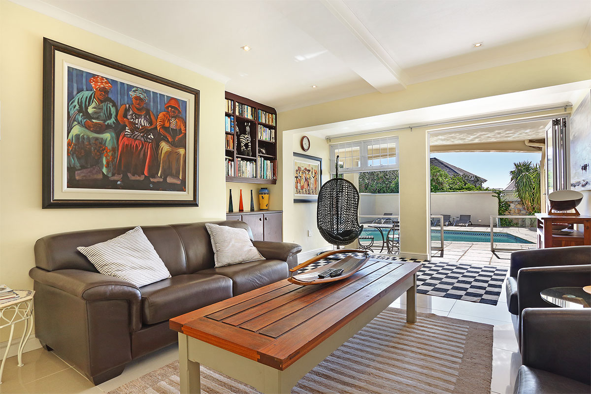 Local art and ethnic prints grace the walls, surrounding you with the atmosphere of Africa. The open-plan living area is furnished with stylish leather couches, every piece adding to your experience of easy holiday living. Here dining, relaxing and socialising on the balcony all flow effortlessly together.