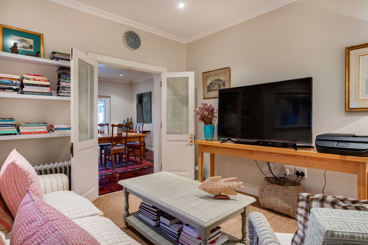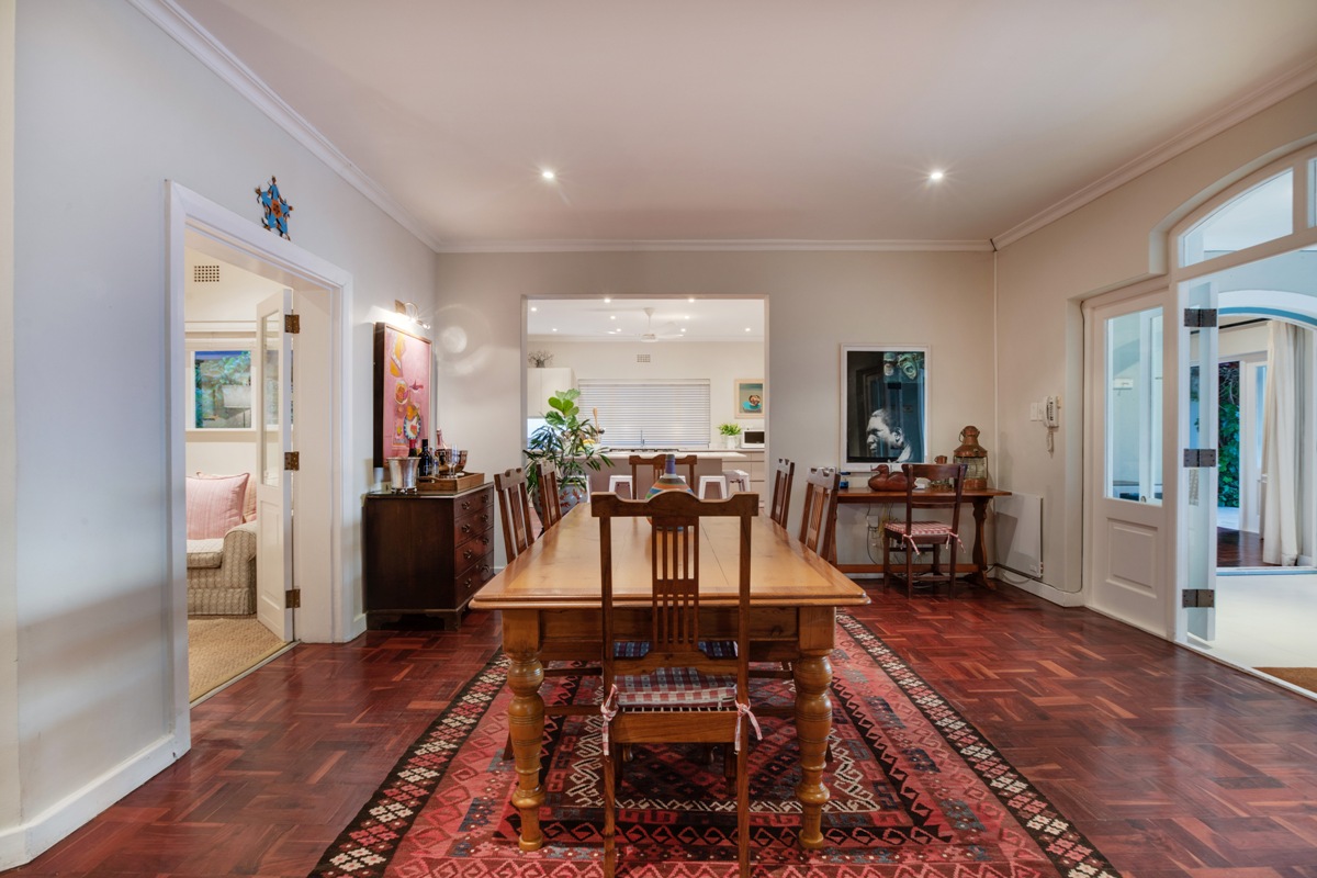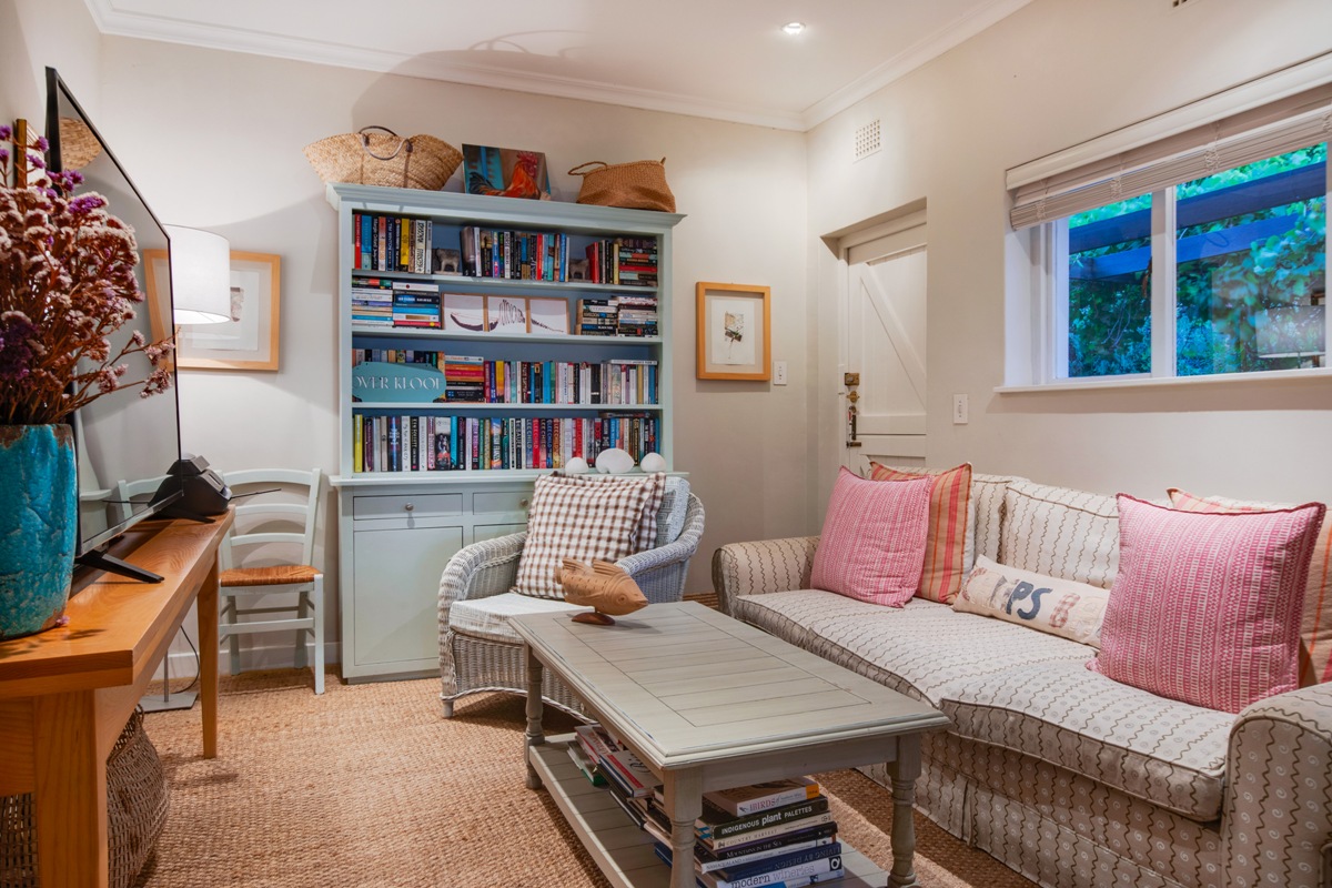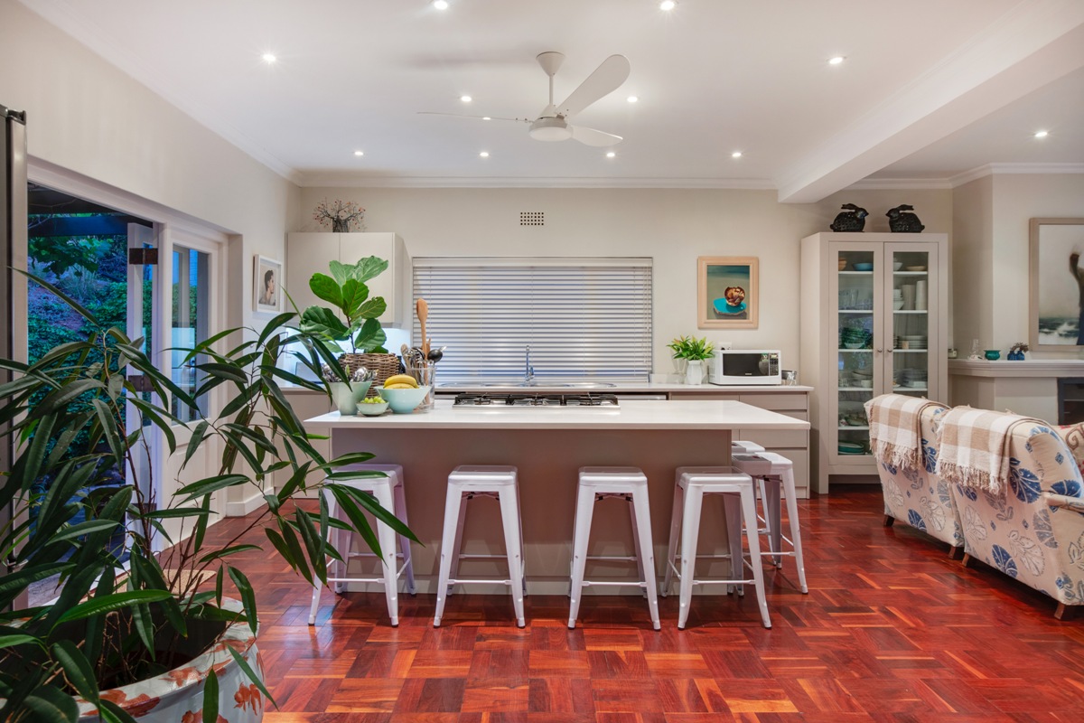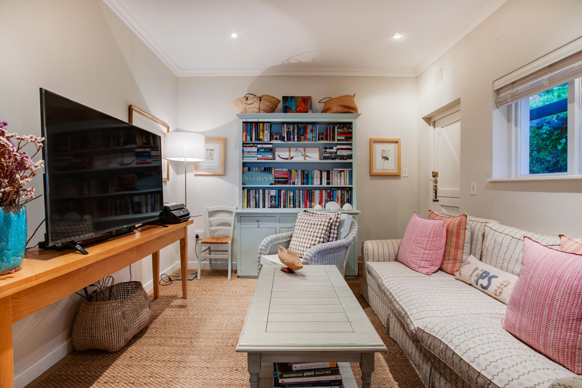 The Tv room flows uninterrupted into the lounge creating a large living area for entertaining or relaxing. Here large doors swing open allowing the warm summer days in.